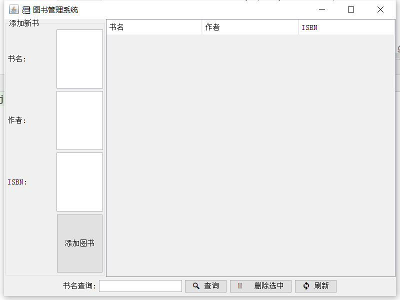 本系统以 Java 语言为开发基础,采用 Swing 图形用户界面框架,设计并实现了一款面向单机环境的桌面图书管理系统。系统涵盖图书的添加、查询、删除及列表展示等核心功能,界面友好、交互直观,适用于小型图书馆、班级图书角或个人藏书管理等场景。