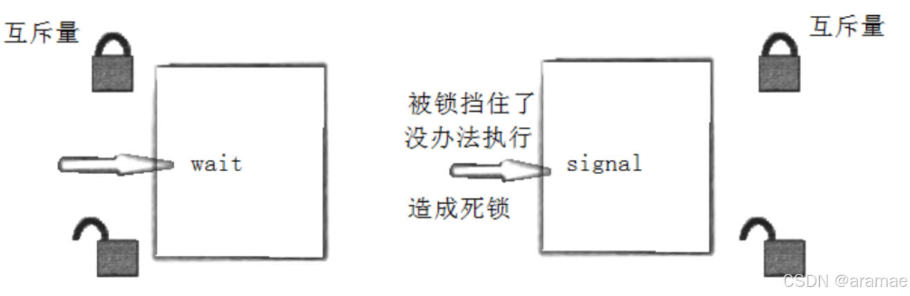 - 如果先解锁再等待,可能会错过信号(在解锁后、等待前,条件可能已被满足并发出信号)。