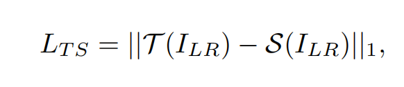 表示低分辨率图像,上面公式是教师网络和学生网络输出层,也就是上采样后的图像的1范数距离损失。