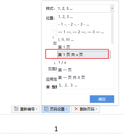 插入页码:在页脚中插入页码,选择"第X页/共X页"的样式。
