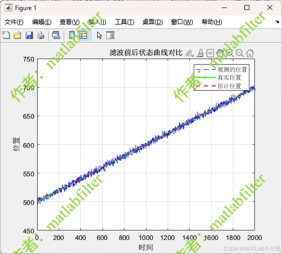 程序中目标真实位置按照匀速模型更新,即
