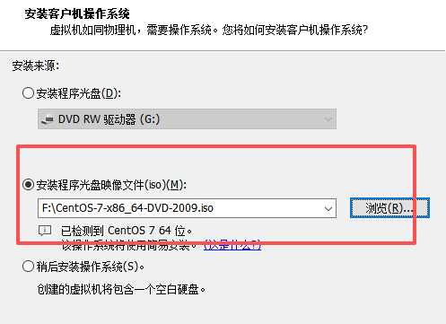 跟前面区别的是这里直接选择映像文件,不采用稍后安装如下图