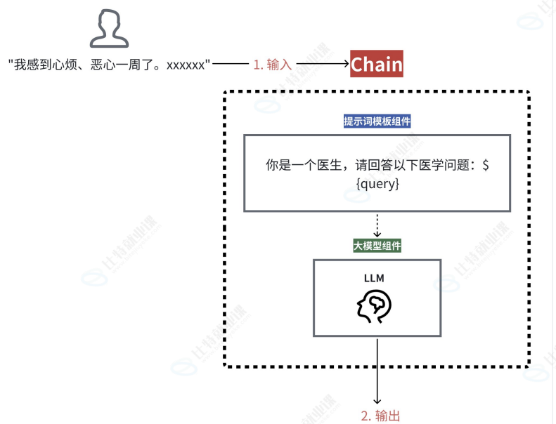 这相当于,提示词模板组件执行了一次,大模型组件也执行了一次。而对于链式执行来说,只需执行 一次链即可: