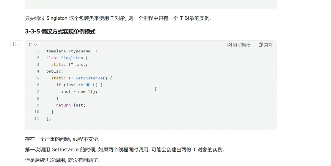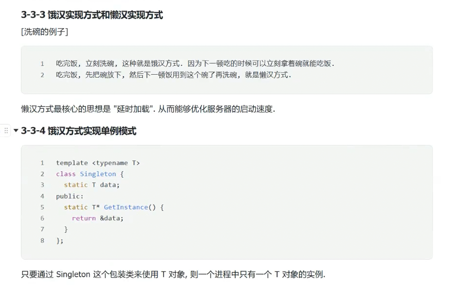 饿汉模式代码编译好加载到内存,这个T对象直接存在了,