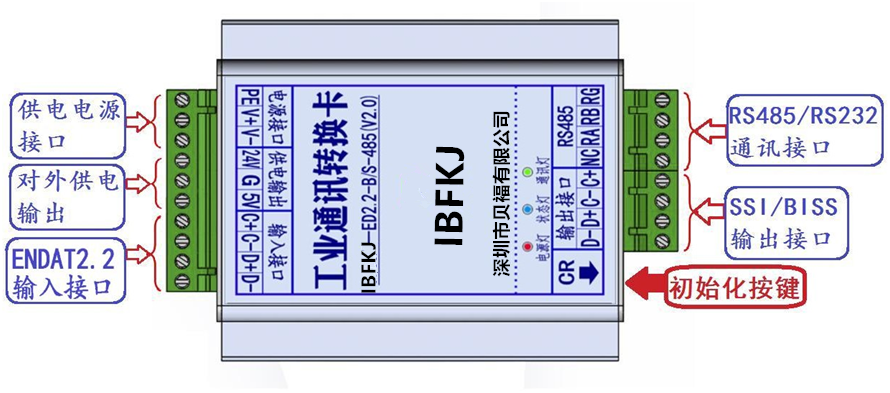 兼容范围广:输入兼容 8-32 位分辨率的各种海德汉 ENDAT2.2 协议旋转编码器、直线位移传感器等传感器产品。