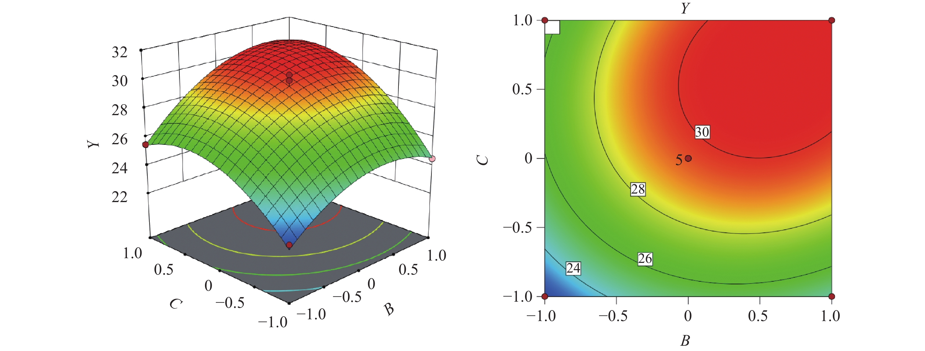 绘制等高线图 和3D响应曲面图 ,用数值优化找到使响应最大/最小的因素组合;并用验证实验确认预测值。