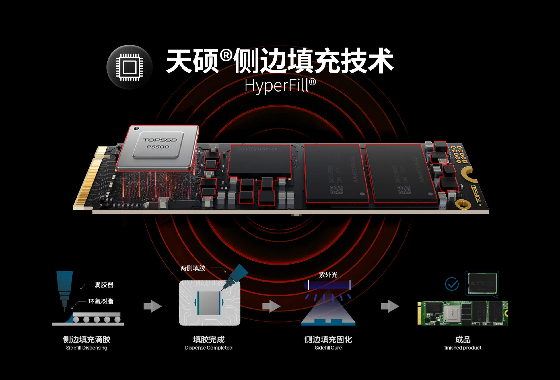 元器件加固:使用抗振型连接器,对主控和闪存芯片底部填充(Underfill)胶水;