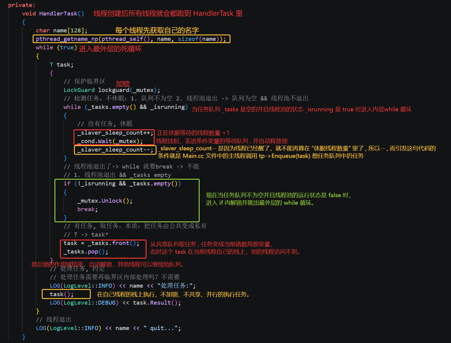 std::cerr << message << std::endl 把日志打印到终端。用 cerr 而不是 cout 是因为 cerr 是标准错误输出流,不会在缓冲区进行缓冲,而是直接实时打印。