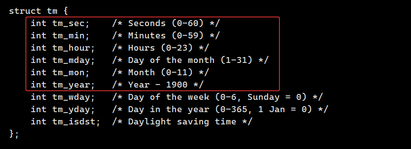 我们来看一下这个结构体 tm :