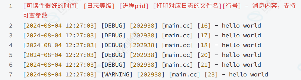 我们今天要设计的日志格式如下:
