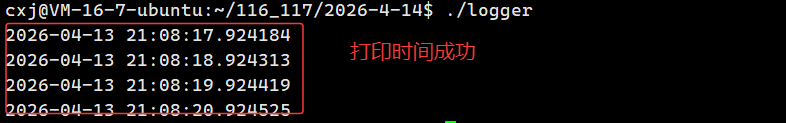 - 线程安全验证:单线程测试下时间无错乱,结合 localtime_r 的可重入特性,可保证多线程环境下时间戳的正确性,无时间覆盖,满足日志的核心要求。