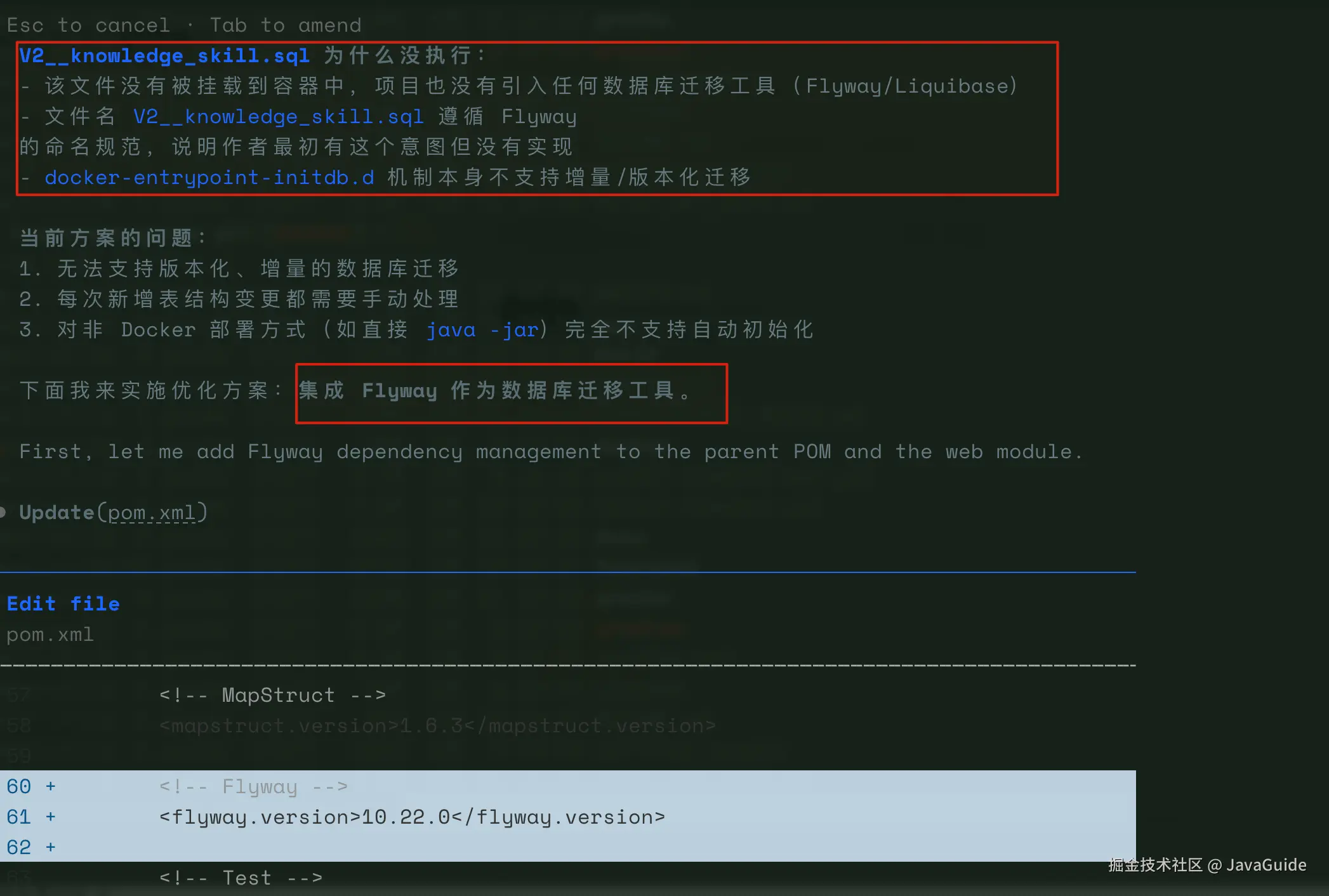 V2__knowledge_skill.sql缺失的原因 - 引入 Flyway 依赖,编写迁移配置