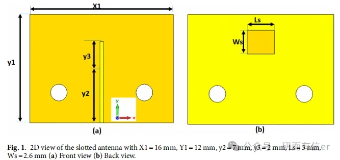 解析:这是整个MIMO天线的基础单元,缝隙长度决定谐振频率,微带线实现阻抗匹配。
