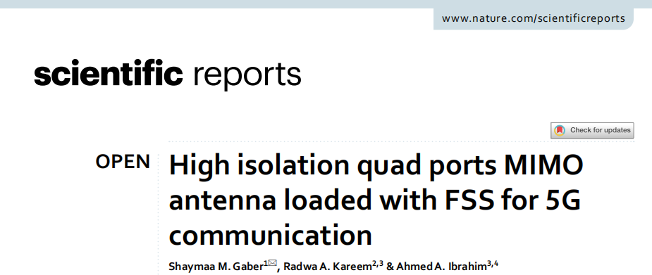 原文出处:Shaymaa M. Gaber et al., High isolation quad ports MIMO antenna loaded with FSS for 5G communication, Scientific Reports, 2025.