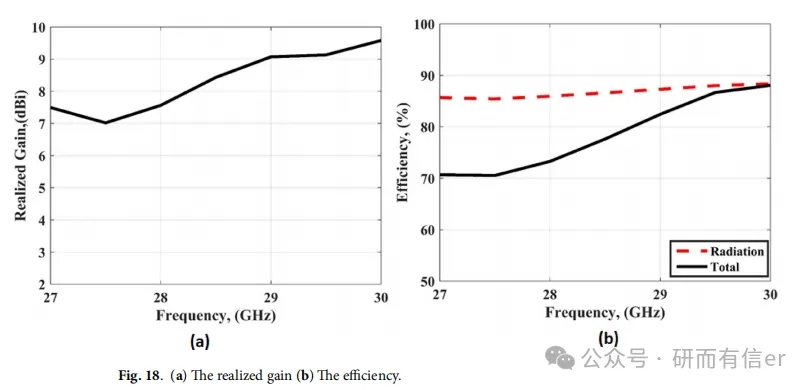 解析:相比无FSS结构(约6 dBi),FSS带来了约2 dB的增益提升,同时保持良好的效率。