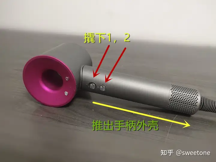 1.拆手柄:用镊子工具撬出开关1,按钮2。