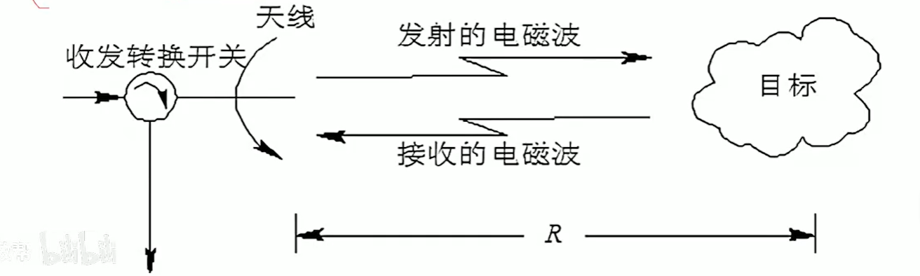 发射机 → 收发开关 → 天线 → 大气传播 → 目标反射