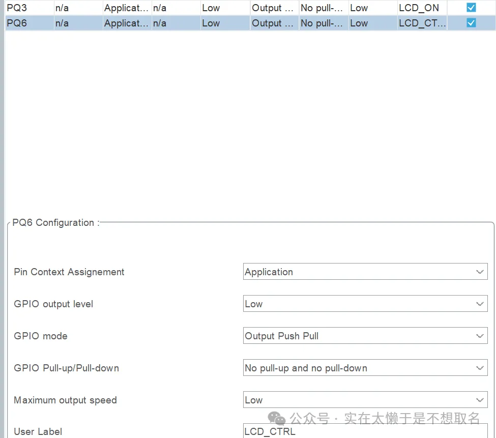 首先是检查LTDC的引脚配置是否和原理图实际引脚对应,没有对应的话需要修改。其次是功能性引脚,例如PQ3,PQ6等需要单独配置。