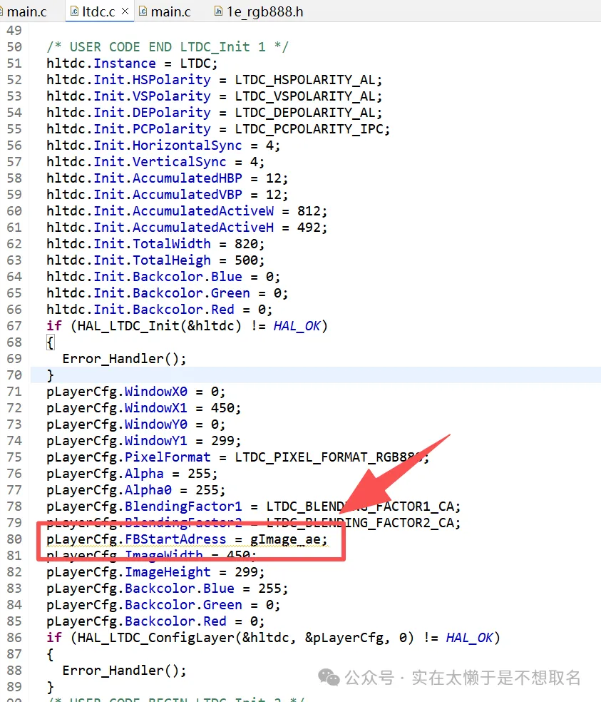利用软件,将图片转为RGB888的数组,接着我们把数组地址填入LTDC层的地址: