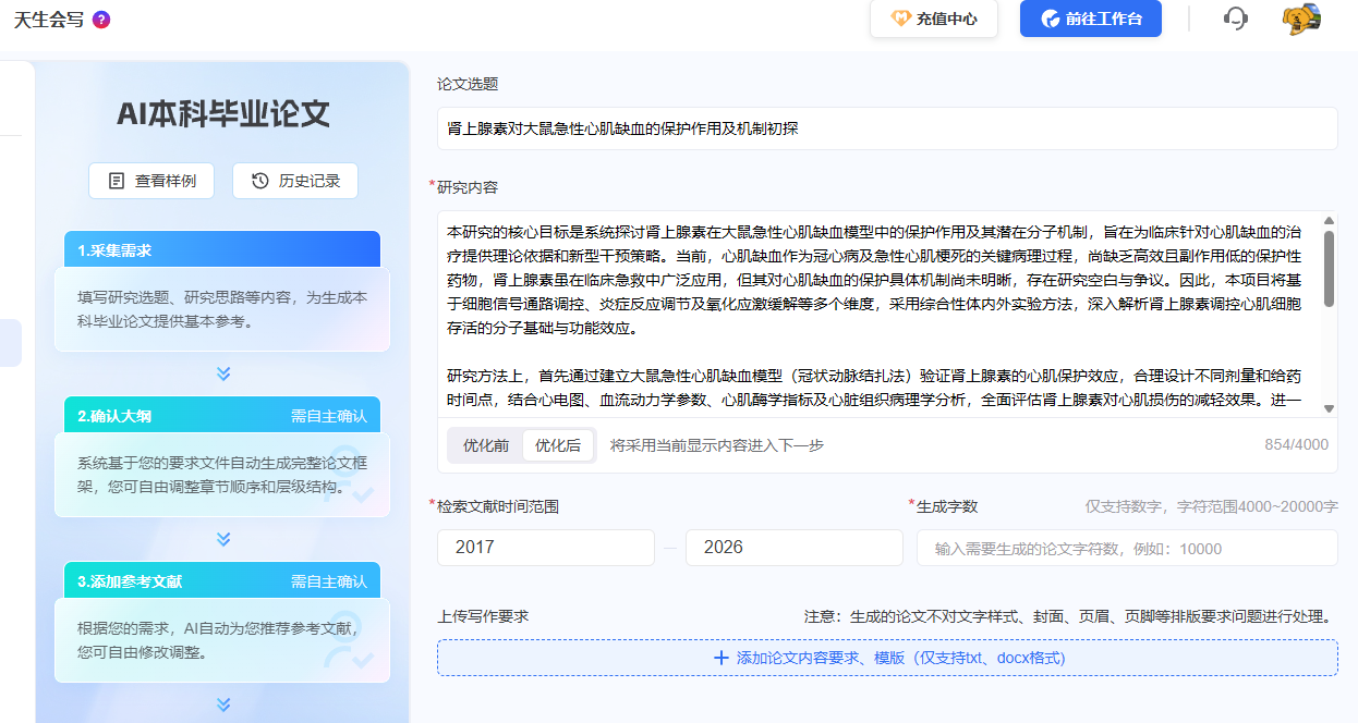 进入MedPeer"科研工具--天生会写"里就能找到,作为专门聚焦本科毕业论文院校要求适配的智能辅助工具,它刚好解决了我刚才说的几个核心问题,全流程覆盖从思路梳理到成稿的所有环节。