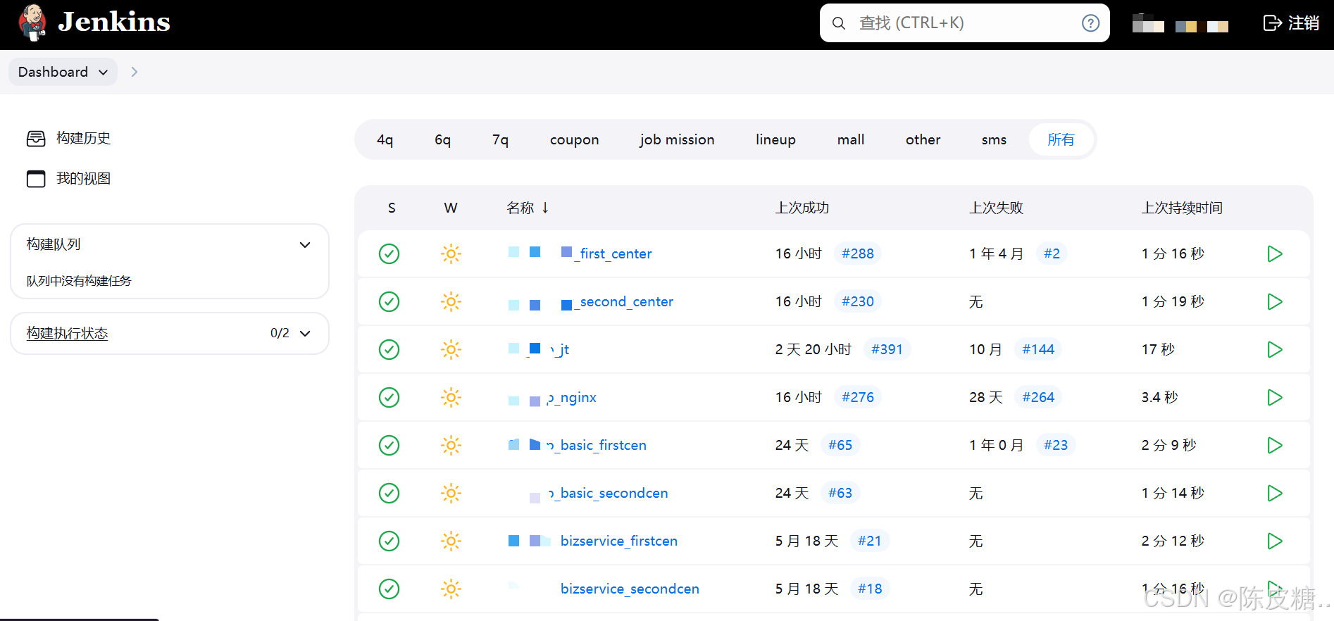 - Jenkins:持续集成,自动化构建、打包、调度