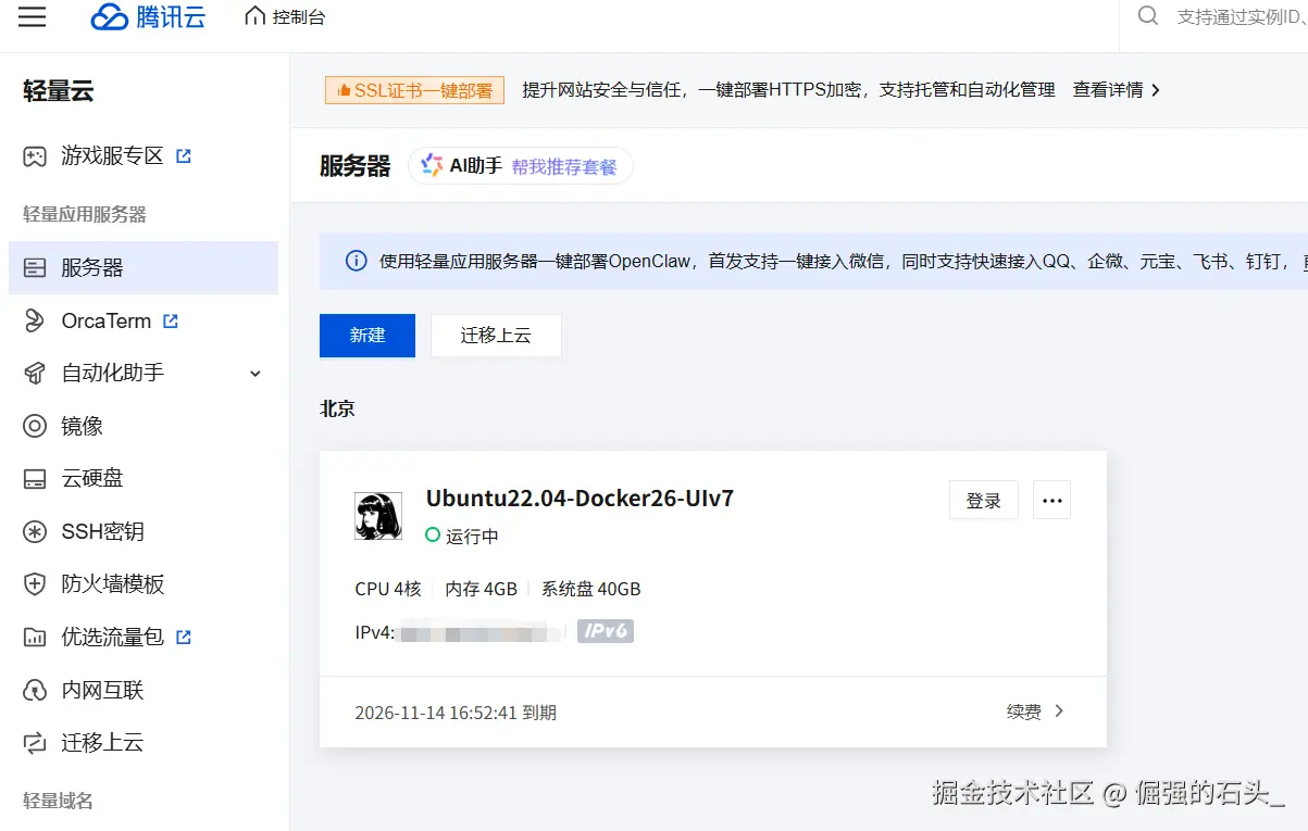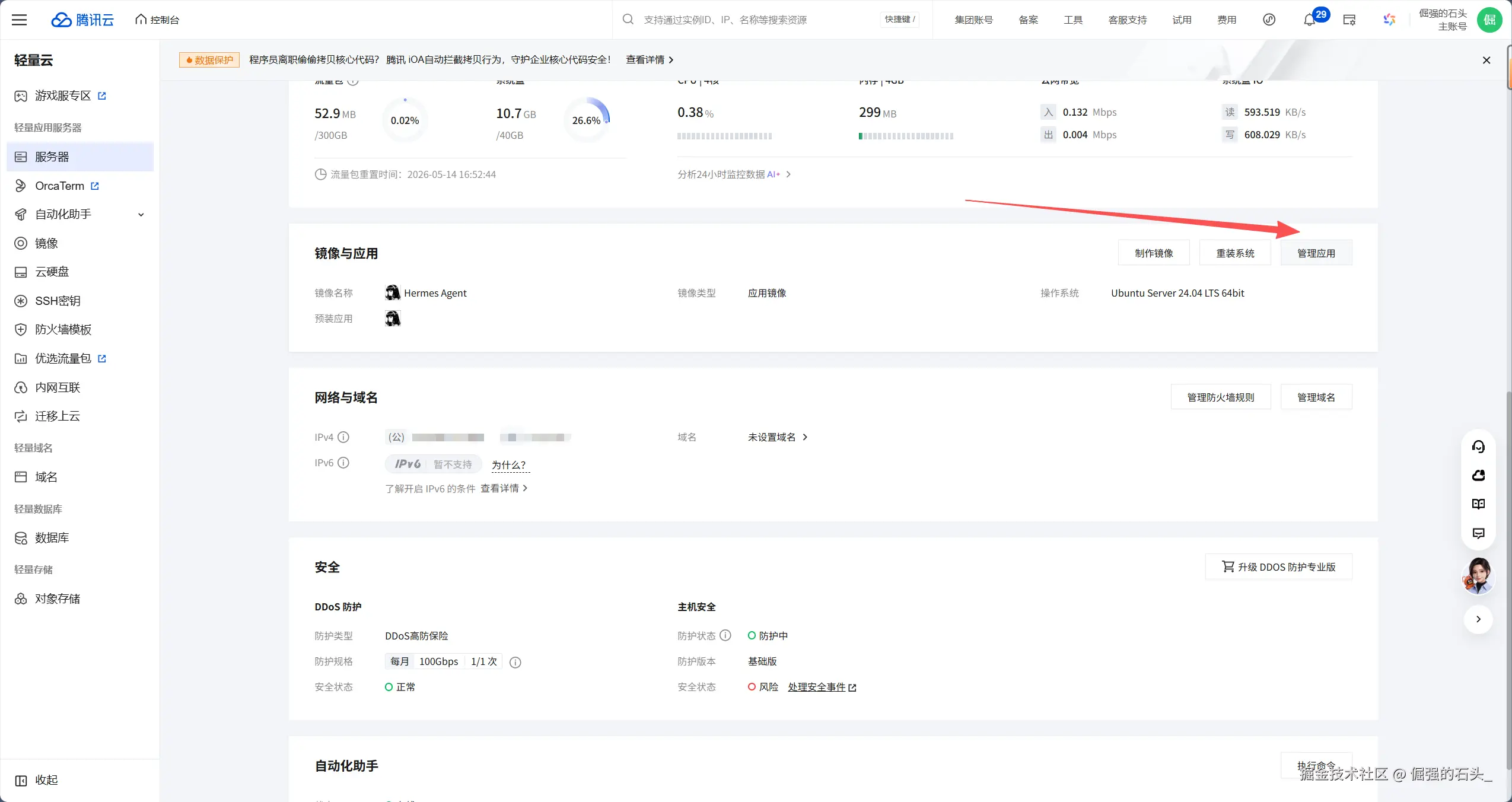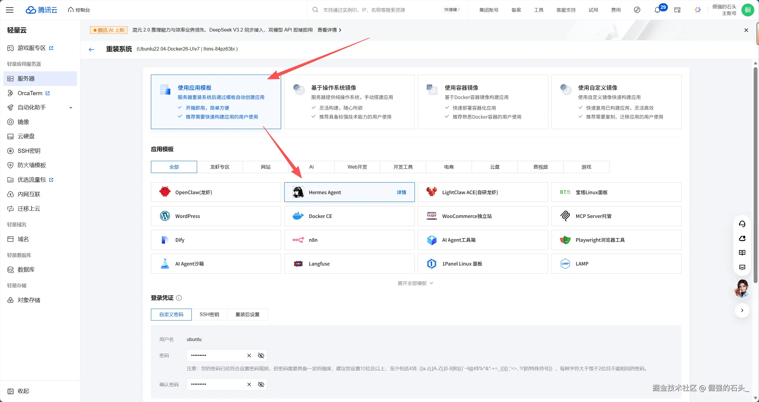 二、 腾讯云 Lighthouse 一键部署 Hermes Agent