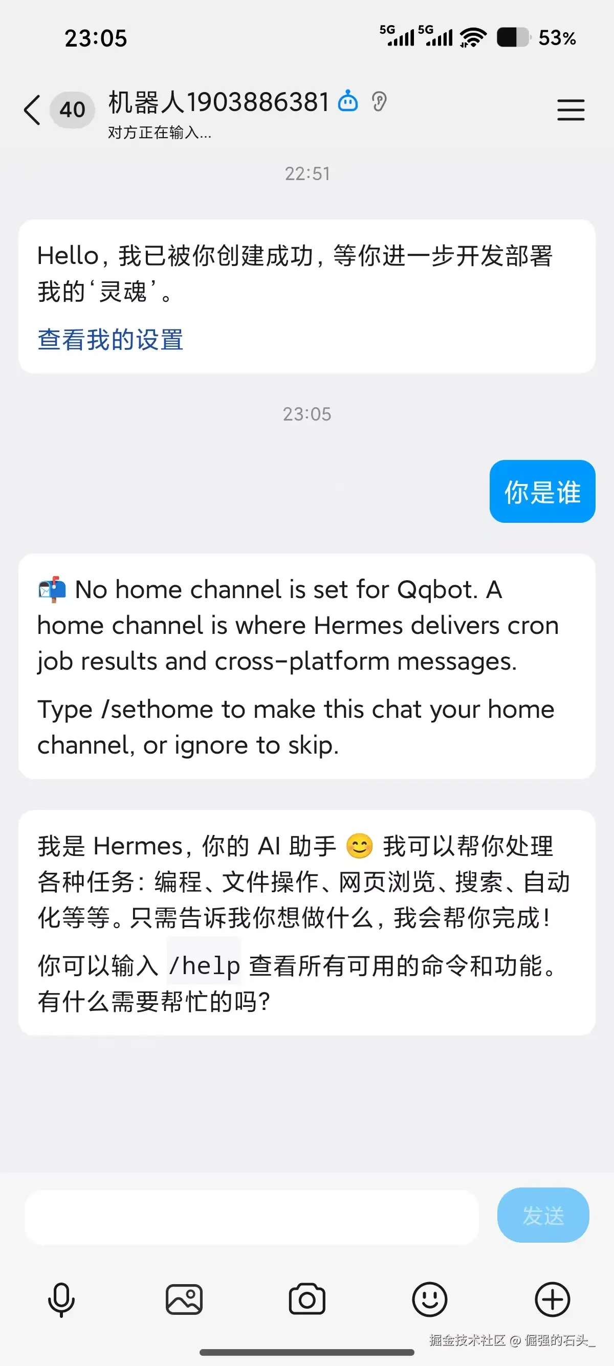 Hermes 自带了强大的 Gateway 系统,支持将 Agent 桥接到各种社交平台。我们将配置其接入 QQ。