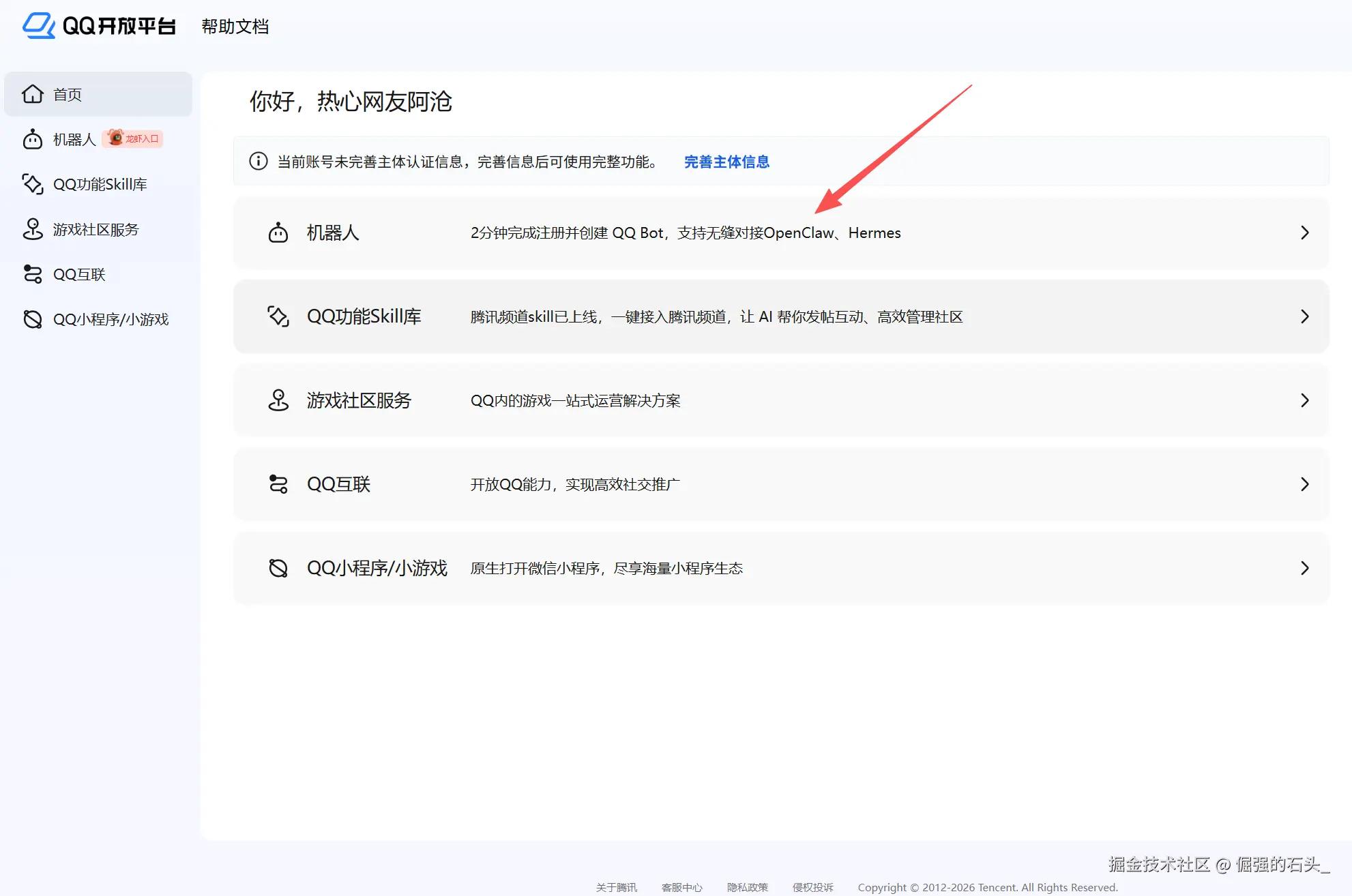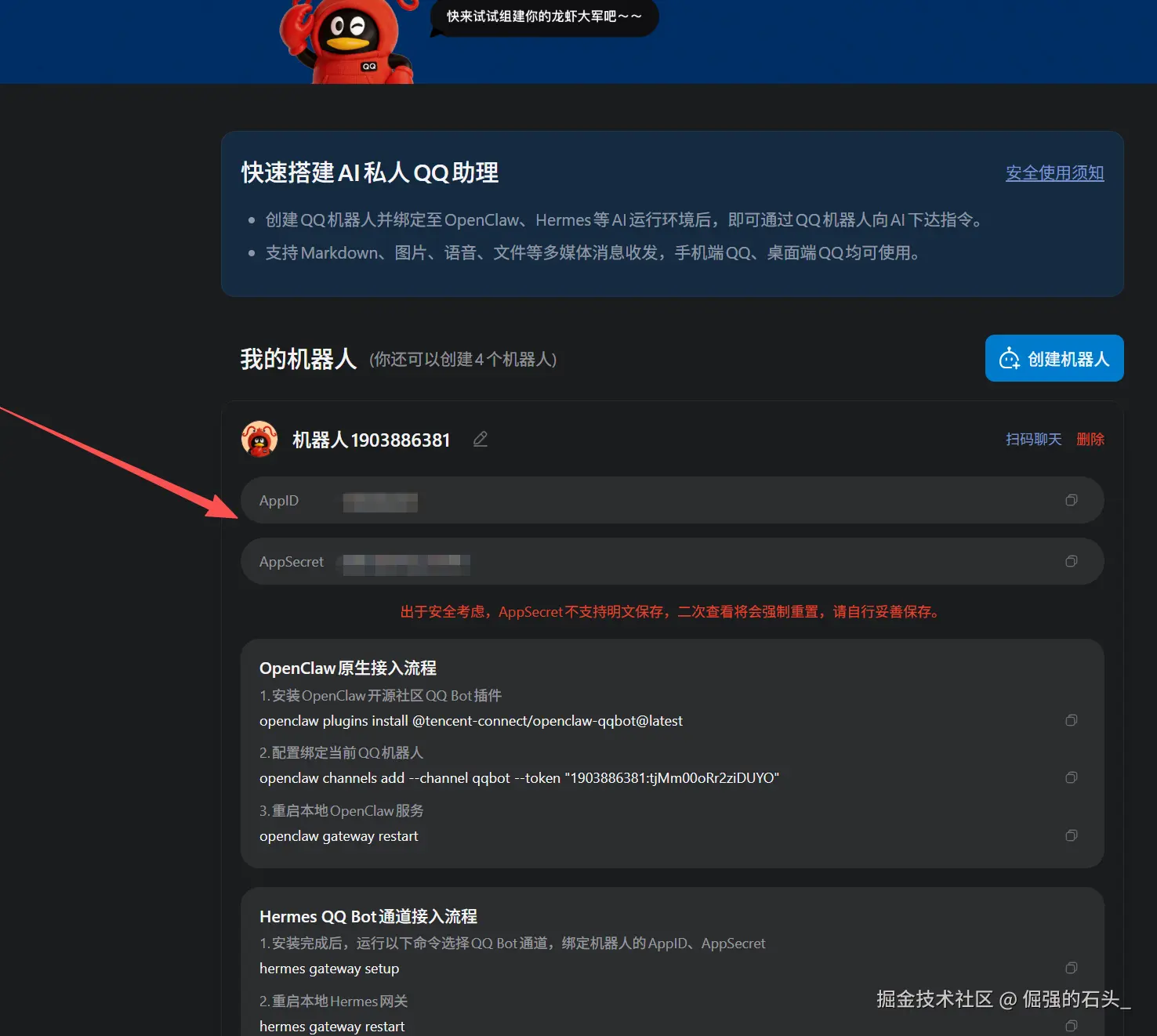你需要前往 QQ 开放平台 (q.qq.com) 注册一个机器人应用