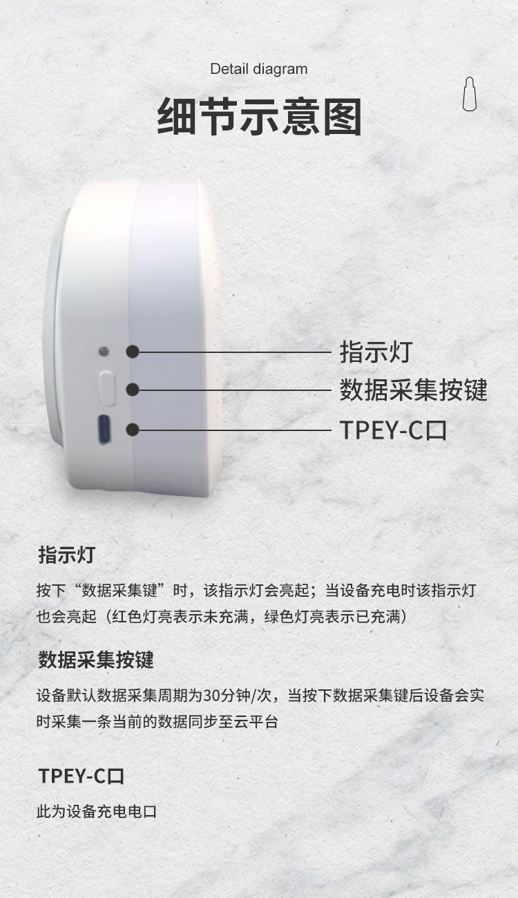 重塑数据监测,关键是实现"智慧化高效",简化管理流程。在智联时代,高效管理是核心需求,4G温湿度传感器通过智慧化设计,让监测更便捷、管理更高效。设备搭载免费云平台,用户无需额外投入,即可实时查看数据、追溯历史记录;支持多人同时登录共享数据,适配团队协作需求,大幅提升管理效率。内置锂电池供电搭配Type-C充电接口,续航稳定、充电便捷,膨胀螺丝固定方式无需专.业施工,进一步降低使用门槛。更有多重超限报警功能,通过短信、语音等多种方式及时预警,实现"早发现、早处置",将环境风险降低。