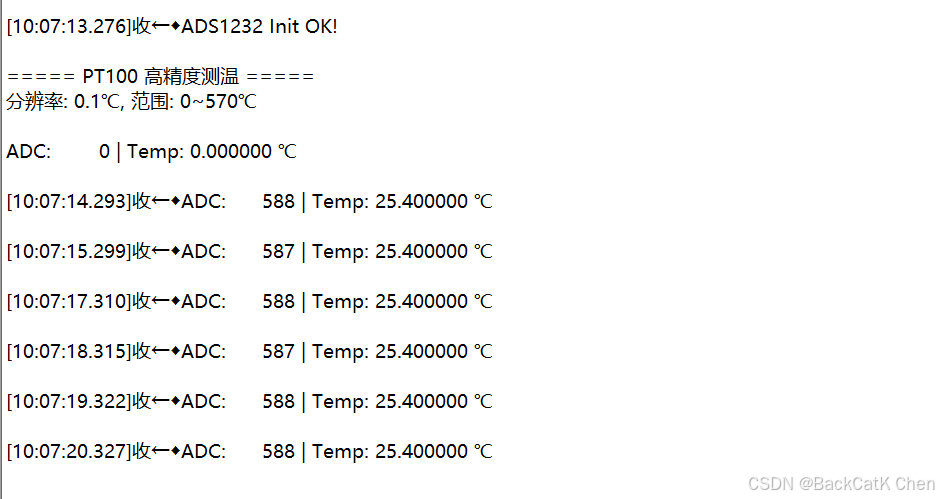 🎉 恭喜!你已经学会了STM32 + ADS1232 + PT100的高精度测温方案!使用预置的0.1℃分度表,无需复杂换算,直接查表即可得到温度值!
