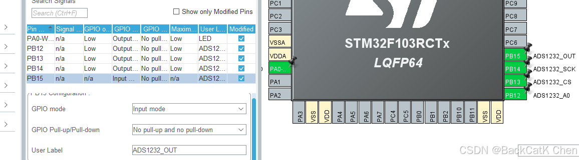 - 接口:PB12=A0, PB13=CS, PB14=SCK, PB15=DOUT
