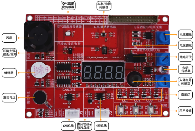 资源扩展板主要用于微控制器入门外设的使用,硬件图纸原理以及项目案例的应用开发学习。