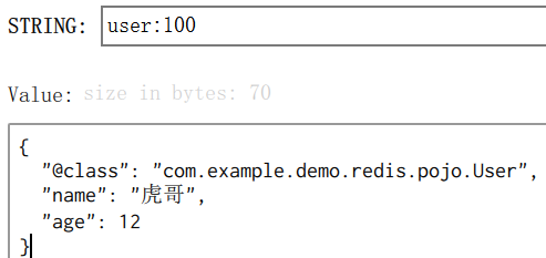 redisTemplate.opsForValue().set("user:100", new User("虎哥",12));