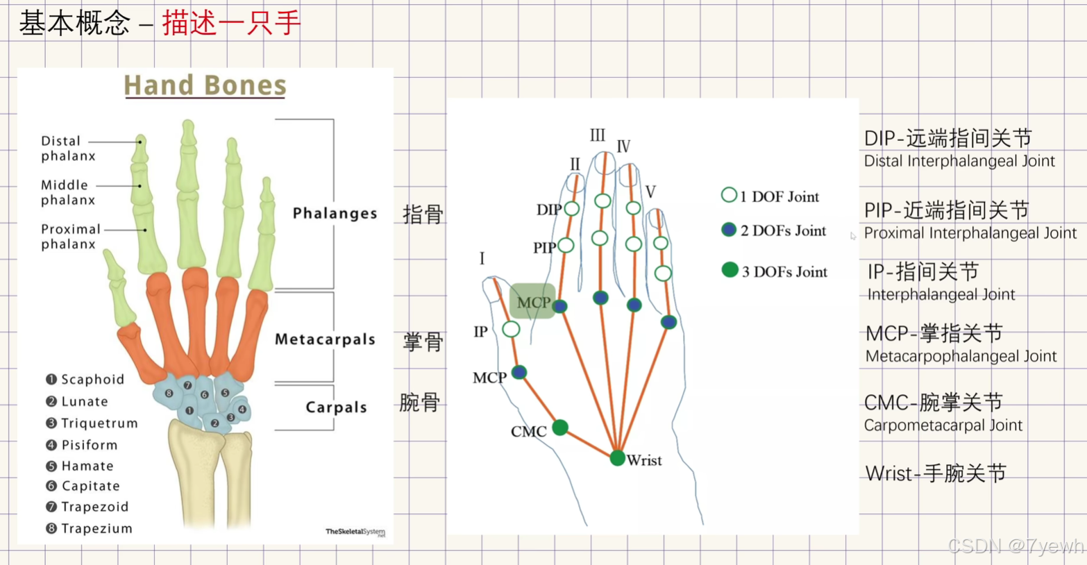 | MCP | 掌指关节 | 手指根部关节,控制弯曲/展开 |