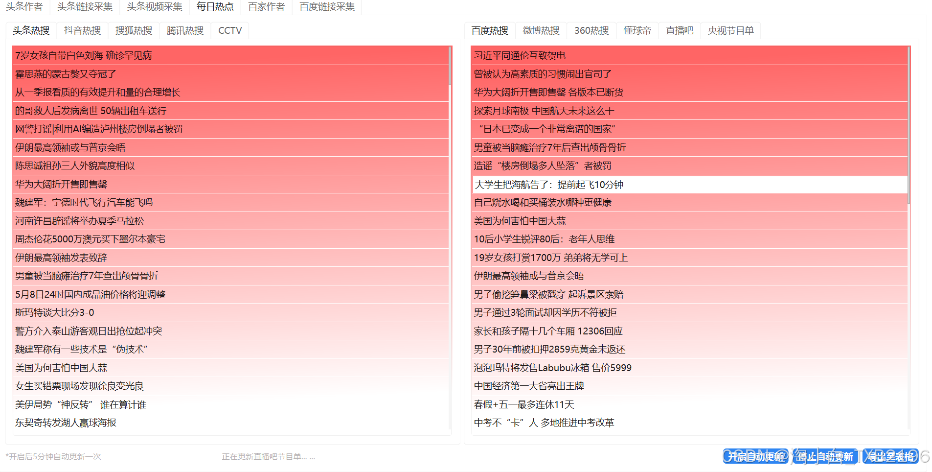 头条 Cookie:建议使用软件内置的 Cookie,请勿随意更换;若更换可能导致采集失败。