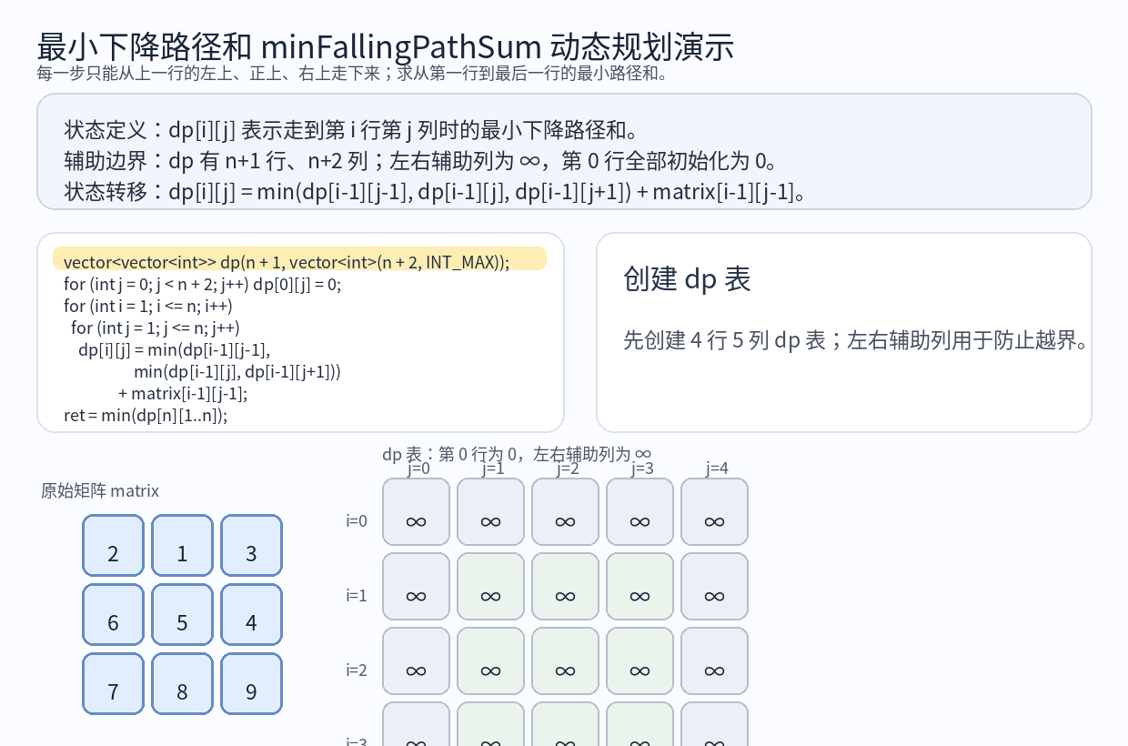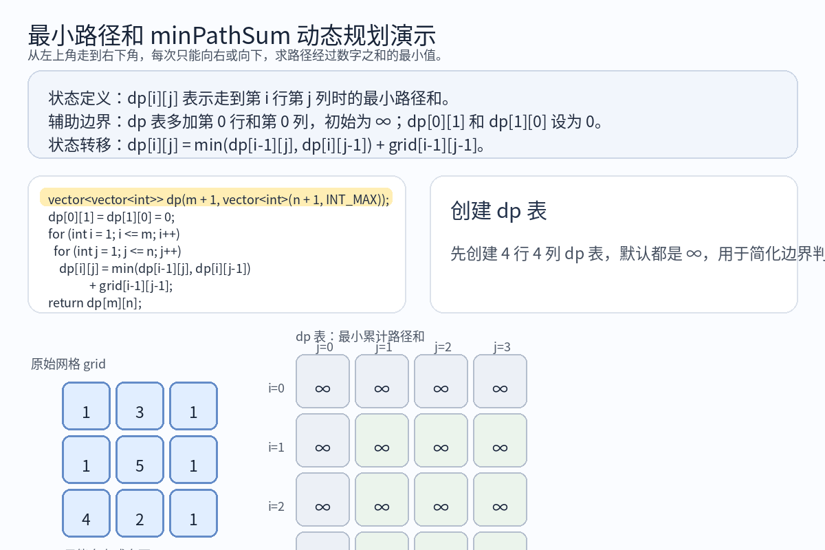 //1.创建 dp 表:多开一行一列作为辅助边界,初始值为无穷大INT_MAX