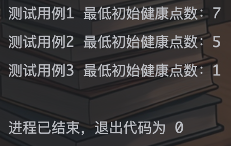 cout << "测试用例1 最低初始健康点数:" << sol.calculateMinimumHP(test1) << endl;