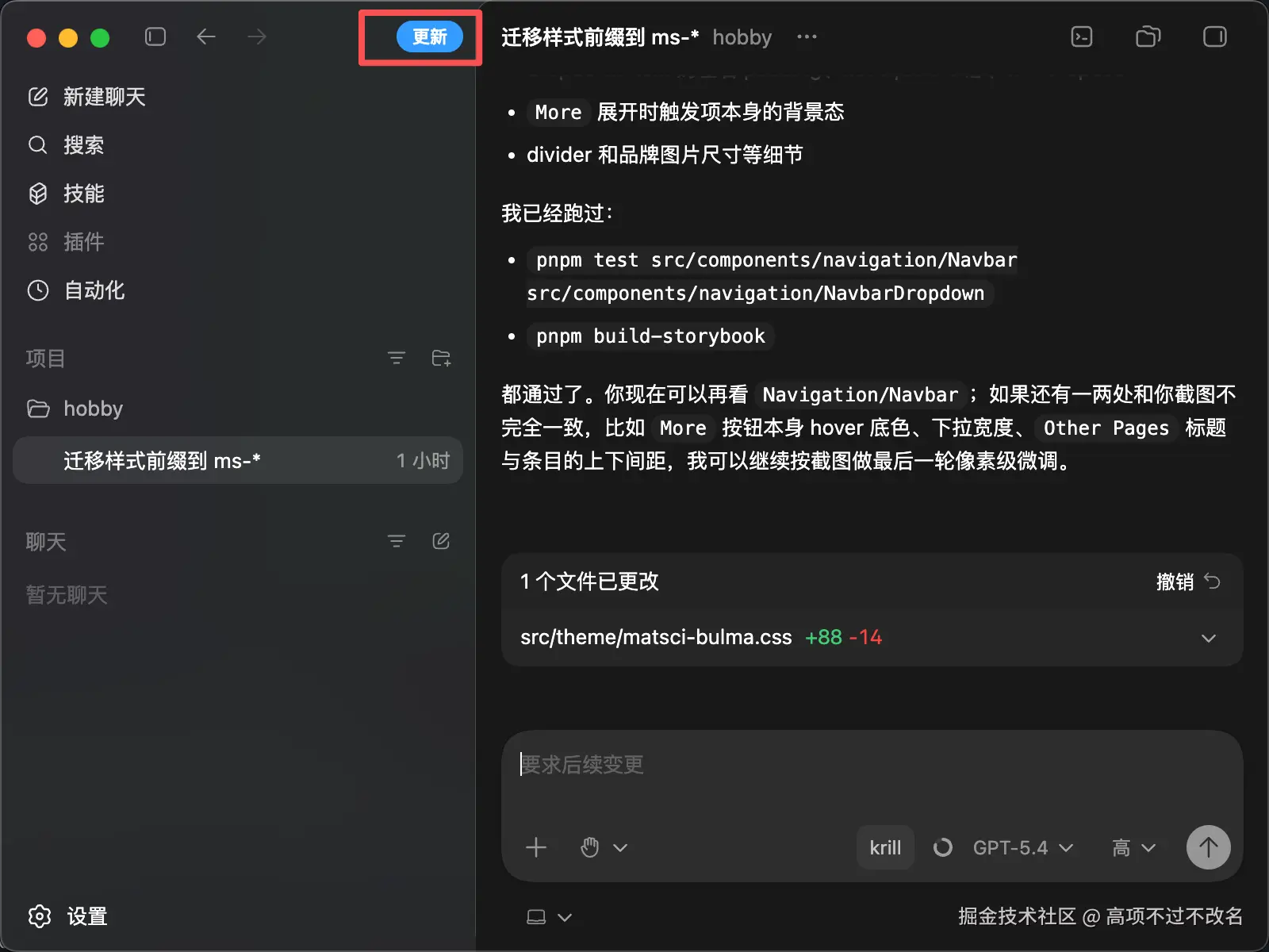 说实话,这种迁移任务特别适合 AI 辅助。因为它不是单点写个组件那么简单,而是要同时处理很多互相关联的东西:改导出入口,要看构建有没有跟上;改主题名,要看文档、Storybook、样式入口是不是一起改到了;换底层依赖,要看现有 API 和交互是不是还能接得住;调样式,还得回到 Storybook 一页页确认有没有视觉回归。