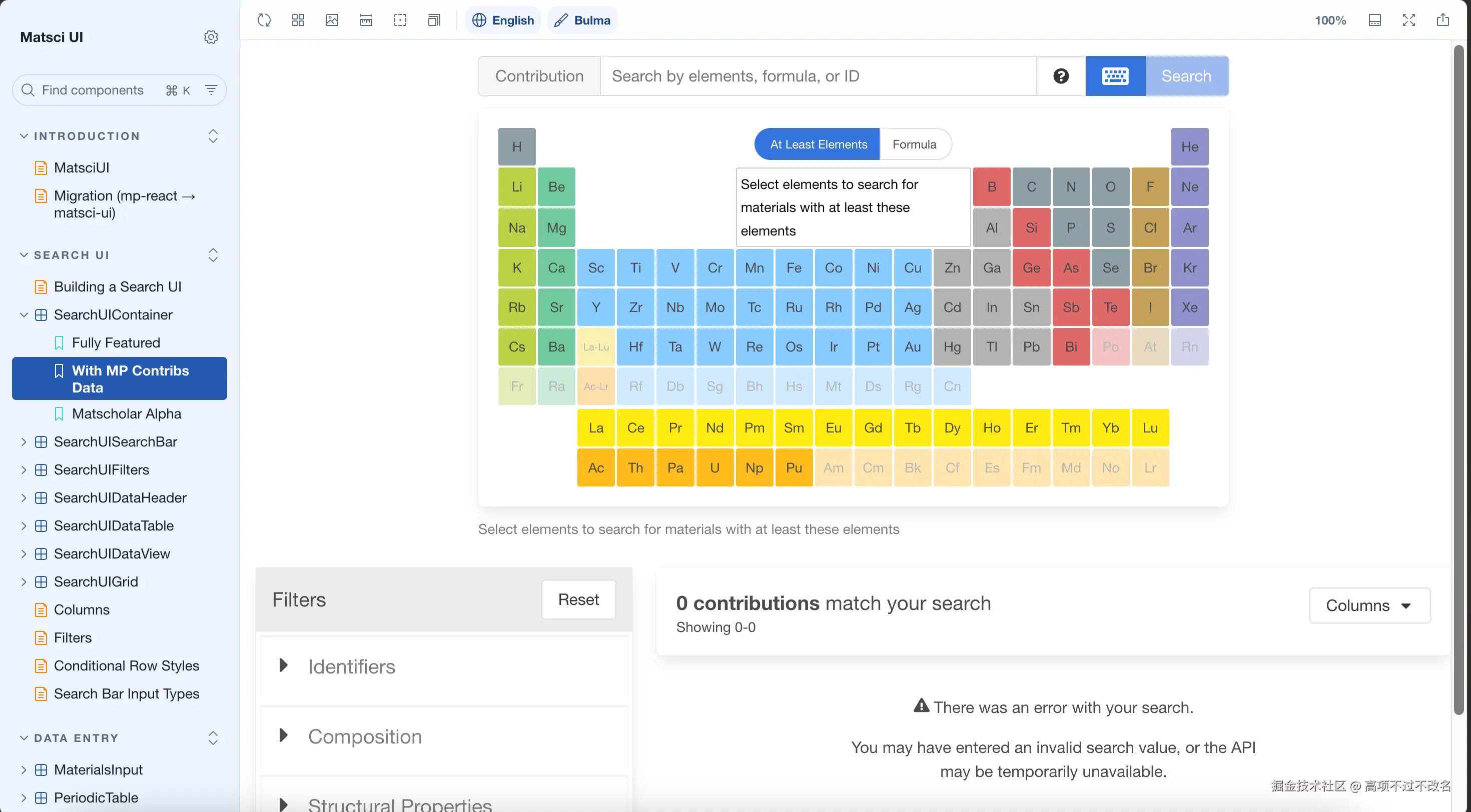 开发同学可能不了解,但是材料学这边的同学应该都很熟悉 Materials Project 团队开源的一整套前后端能力,前端 UI 里比较核心的一个仓库是: