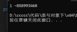 D 原因:进入函数构造,形参a=1,由于初始化列表中按照成员变量在类中声明顺序进⾏初始化,_a2先初始化,而_a1还没有,所以为随机值,_a1显示在初始化列表初始化,值为a=1,所以为1。