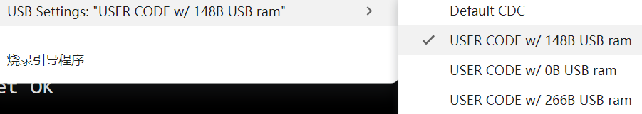 注意在使用内部晶振时,USB设置要选择USB CODE模式,如图: