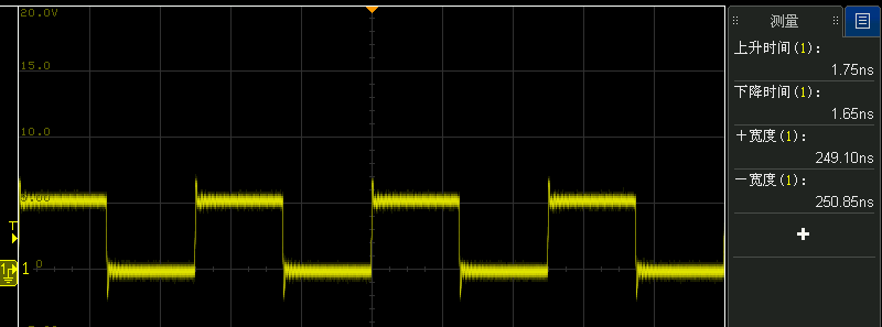 以TP3057对2.048M时钟要求为例,其边沿跳变时间不大于50ns,高/低电平维持时间不小于160ns。实测图如下,很明显可以看出,完全满足要求。