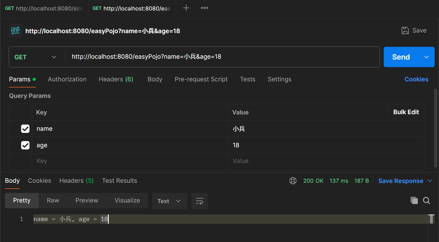 public String simpleParam(String name ,Integer age){