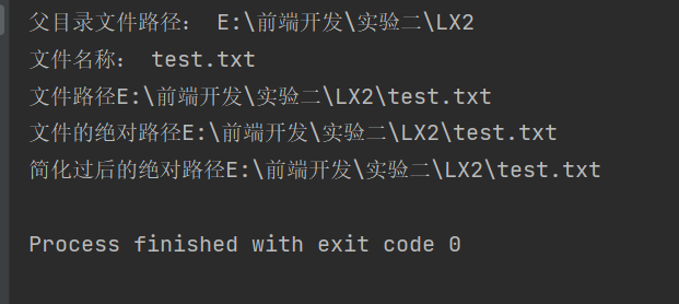 绝对路为: E:\前端开发\实验二\LX2\test.txt