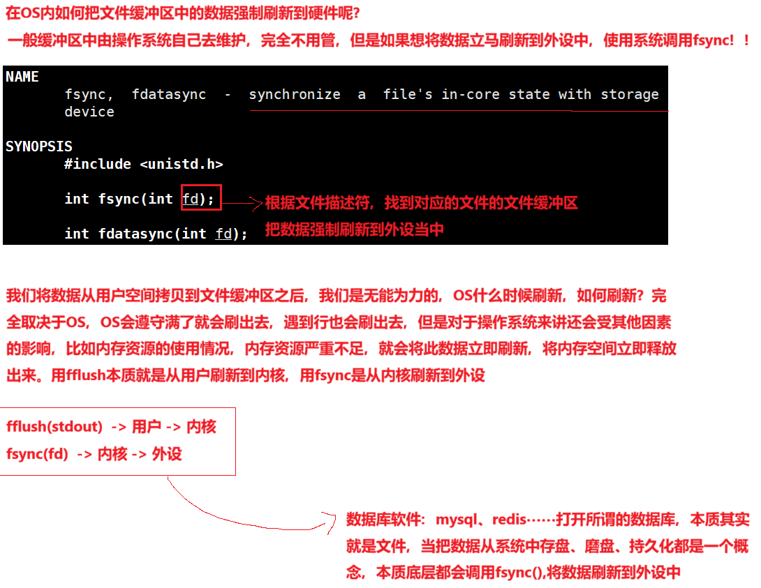 至此,用户将数据交给OS的文件缓冲区中,至此用户层就完成了对应的工作,那OS对文件缓冲区又是什么时候刷新呢?