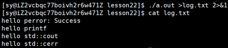 所以,以前的 ./a.out > log.txt 是一种简写,完整的写法为:
