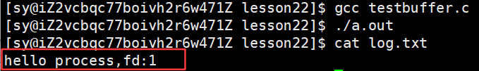 将1号文件关闭,打开log.txt,已经是全缓冲了,printf中的字符串是在用户缓冲区里,强制fflush是将用户缓冲区的数据刷新到内核,最后进程结束了,OS就把进程打开的所有文件都关掉,将文件内核的缓冲区刷新到外设,所以就可以看见了。