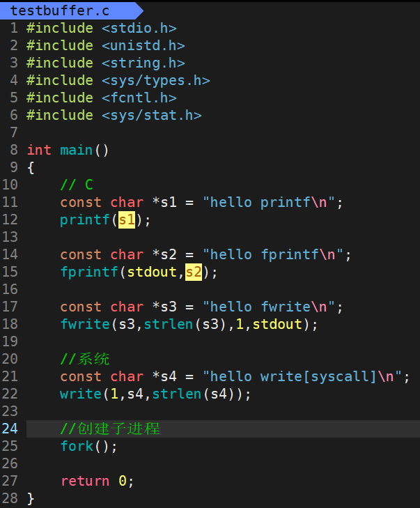 - 行缓冲区:在行缓冲情况下,当在输⼊和输出中遇到换行符时,标准I/O库函数将会执行系统调用操作。当所操作的流涉及⼀个终端时(例如标准输⼊和标准输出),使用行缓冲方式。因为标准I/O库每行的缓冲区长度是固定的,所以只要填满了缓冲区,即使还没有遇到换行符,也会执行I/O系统调用操作,默认行缓冲区的大小为1024。
