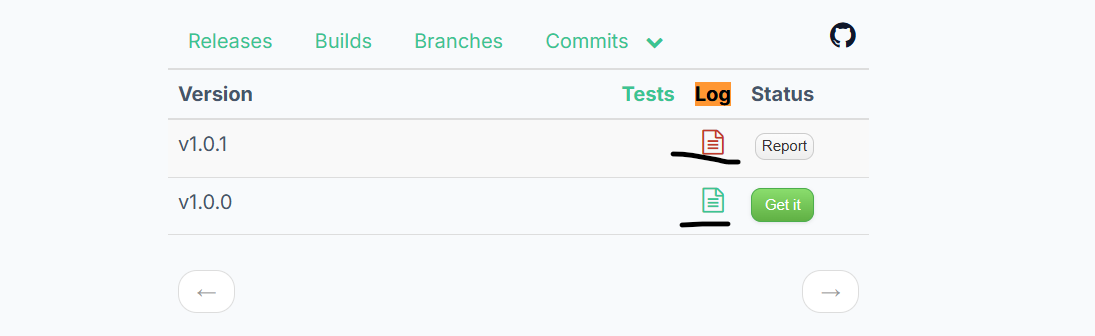 看到每个版本都有构建日志。 可以查看构建是否成功。看到1.0.0是成功的,后面这个1.0.1版本多余了。