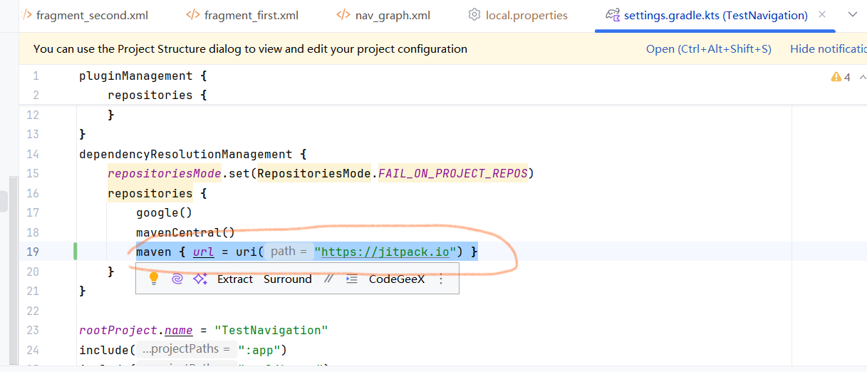 顺便把上面的配置提示拷贝下来,也许安卓工程依赖远程仓库能用到: